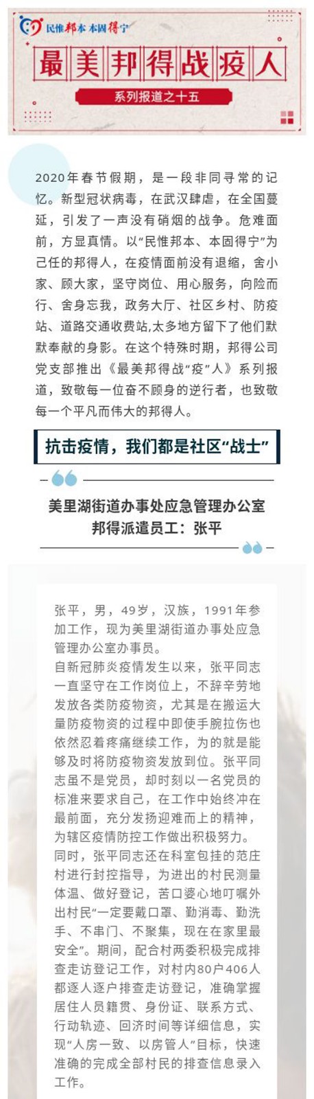 最美邦得戰(zhàn)“疫”人 — 系列報(bào)道之(十五)