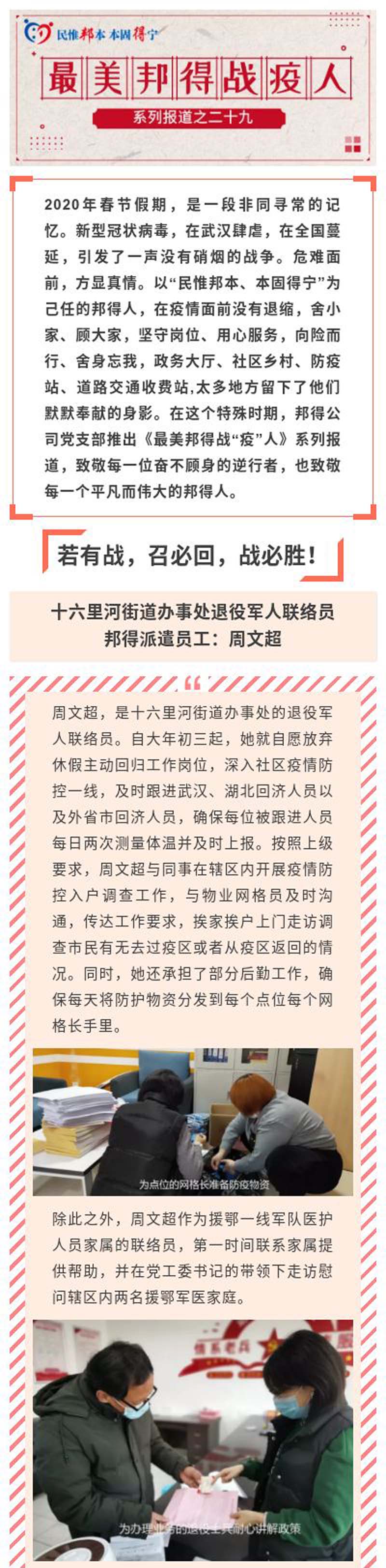 最美邦得戰(zhàn)“疫”人 — 系列報道之(二十九)